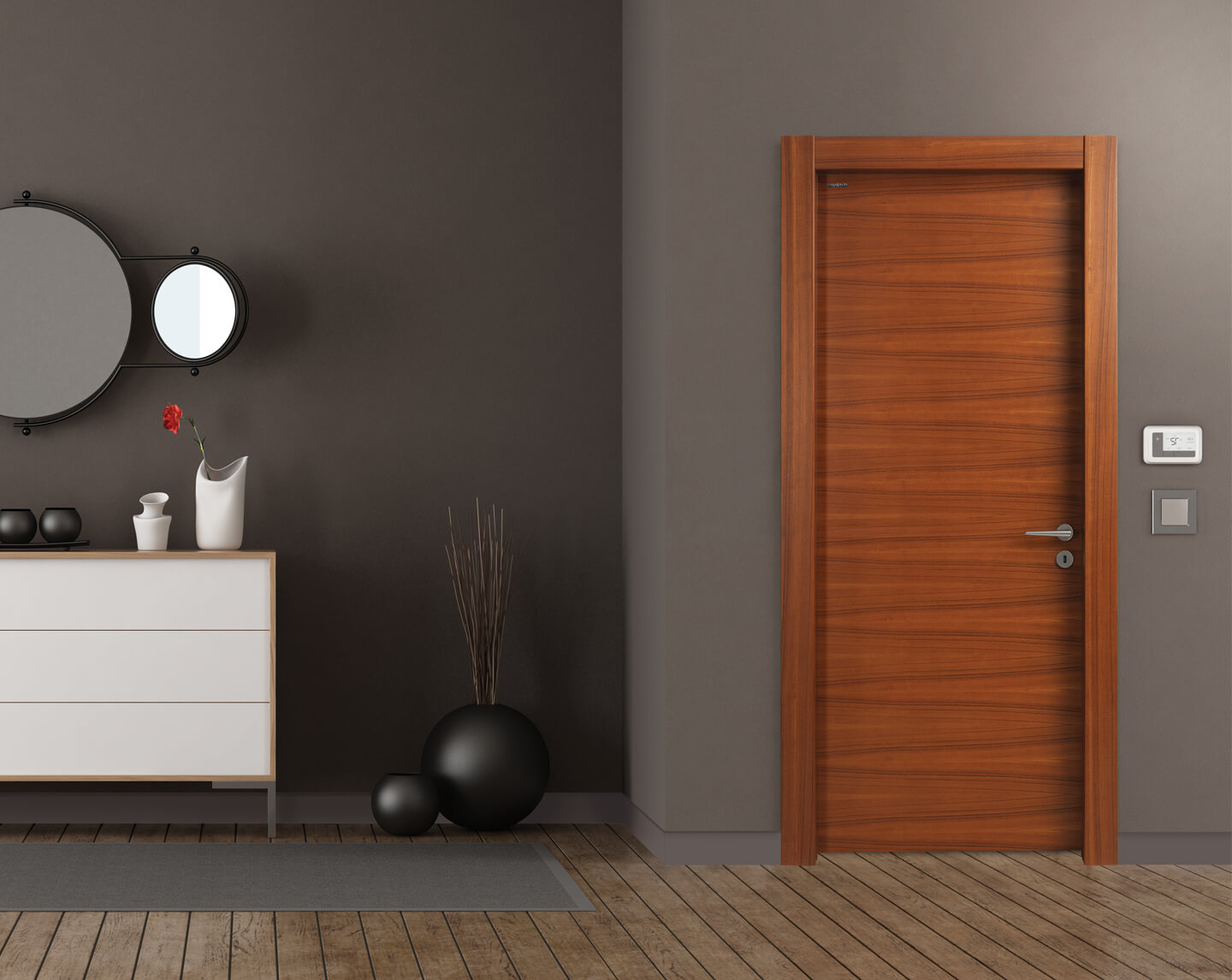 Our wood veneer doors exude warmth and elegance and are manufactured with a solid engineered MDF and pinewood core, a honeycomb, tubular or solid chipboard inner filling (imported from Germany), and a layer of real wood veneer applied over it, in a choice of either mahogany, oak or walnut.