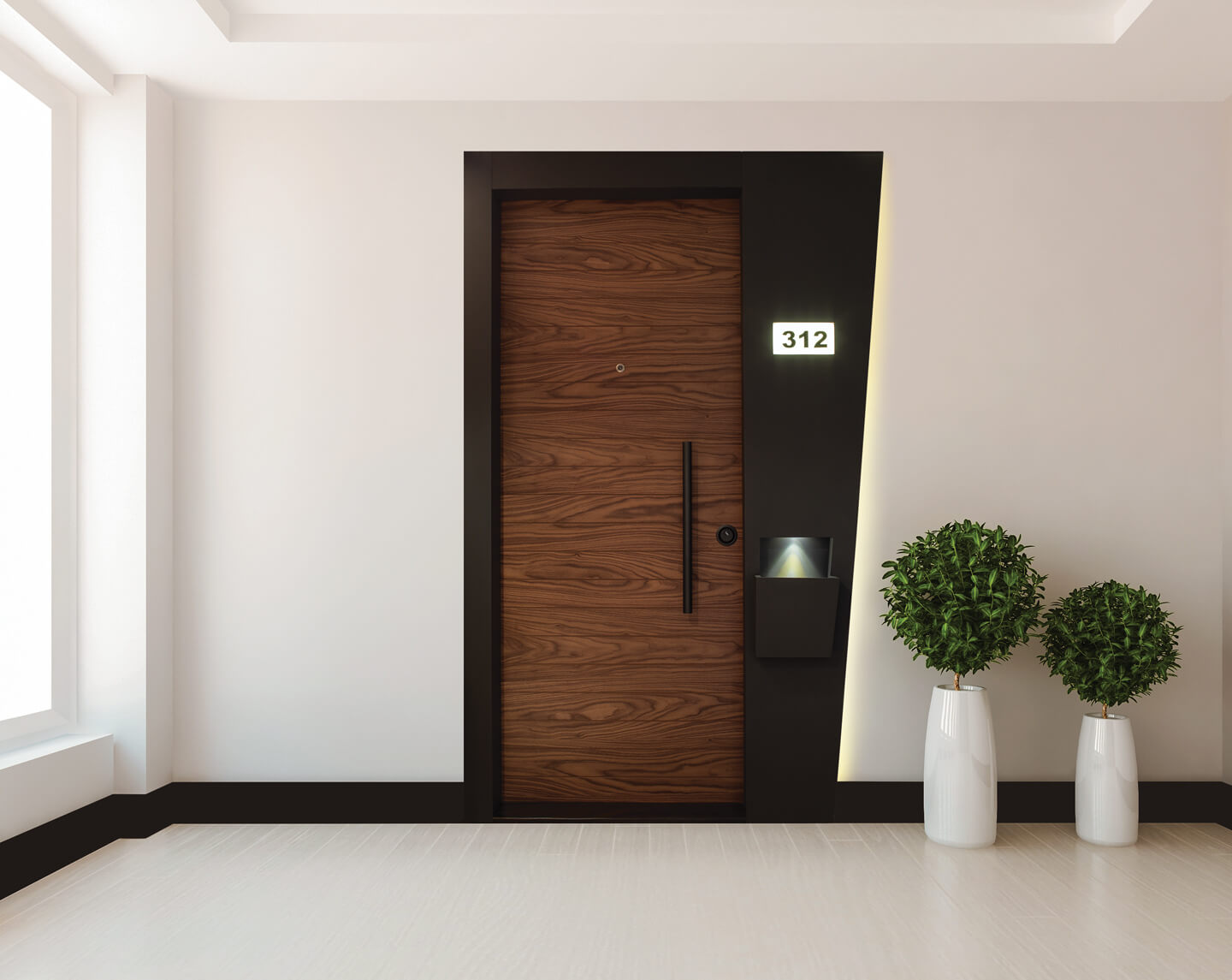 Suitable for condominiums and hotel rooms, our exterior Wood Veneer doors have a 4mm steel interior frame with MDF panels and a natural wood veneer from a choice of either mahogany, walnut or oak.